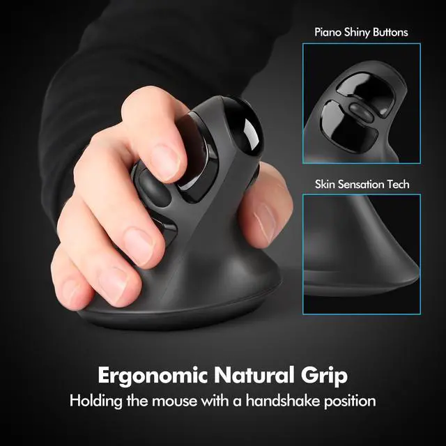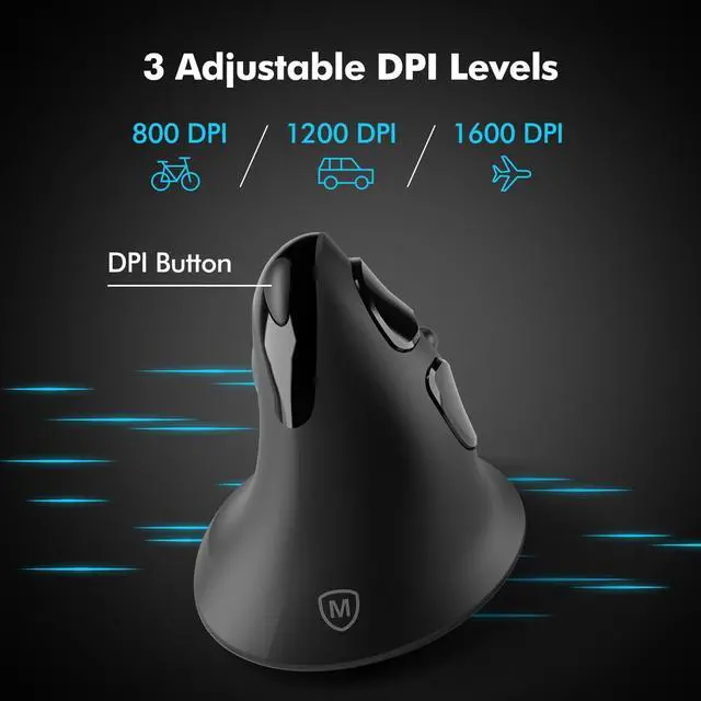 Unique Vertical & Ergonomic 60 Natural Handshake PostureCompared to traditional horizontal mice, MicroPack new upgrade mouse with silent clicks is meticulously crafted with vertical shape, adopt an ergonomic design that can naturally adapt to the natural posture of the human palm. It reduces strain and fatigue in the wrist, forearm and arm, helping users maintain a comfortable and healthy working state. ^^ High Precise Tacking & 3 Adjustable DPIThis comfortable mouse with natural grip achieves high-precision cursor control, providing a smoother mouse operation experience. Multiple adjustable sensitivity settings up to 1600 DPI can adjust the speed and accuracy of the mouse, easily switch DPI with a simple press of the switch, making it ideal for gaming, design work, and other demanding tasks.