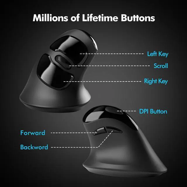 Noise-reducing buttons make it suitable for office, home, gaming, shared workspaces or quiet environments. ^^ Forward And Backword ButtonThe dedicated forward and backward buttons offer a convenient and efficient means of navigation. Our user friendly vertical mouse is made of high-quality materials, with excellent durability and reliability, and can work stably for a long time. Please note that the product cannot be programmed.