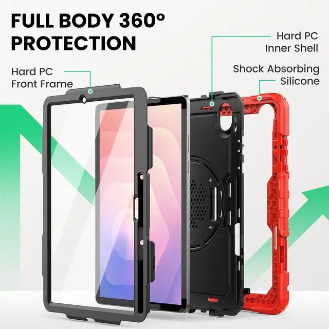Stand and Handle: The tablet case comes with a stable stand and rotating handle, making it easy to use your tablet, for anything from video call to watching movie; provide full protection for your tablet screen with a built-in screen protector. ^^ Convenient and
