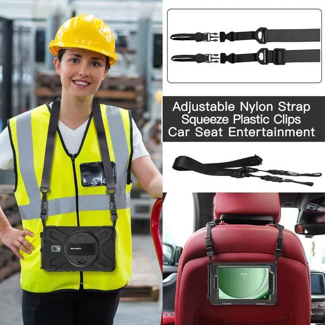 Hand Strap: Located on the back of Galaxy Tab Active3 8 inch heavy duty cases, built-in 360 degree rotating kickstand and adjustable handle hand strap provides a more flexible and convenient way to use your tablet during work, study or journey, ideal for students, teachers, engineers, cashiers and waiters, etc. ^^ Adjustable shoulder strap You can remove or adjust the strap to a comfortable length, then this Galaxy Tab Active5/Active3 tablet can be carried in a landscape/portrait modes more securely during hiking, traveling or other outdoor activities. Also, the strap allows to hang up your tablet behind car seat for entertainment for kids to kill free time or keep quiet. ^^ Customer ProblemOur professional service team is here to help you solve your problems. Please contact us via email with any questions.