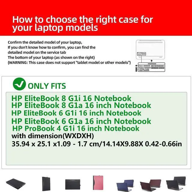 Laptop Case for HP ProBook 4 G1i 16 inch (EliteBook 6G1i^^EliteBook 6G1a EliteBook 8G1i ^^EliteBook 8G1a )16" PU Leather Protective Bag Detachable Shell ^^ laptop size: 14.21 x 9.84 x 0.78 in 361mmx250mmx20mm), 0.565 kg, not suitable for any other laptop ^^ Please check your model for purchase. It is not suitable for other 16-inch machines. Don't mind buying at will ^^ The case is made of high-quality PU leather, which is beautiful in appearance and delicate in hand; the soft microfiber fleece inner layer can better protect the laptop Simple installation and disassembly, anti-scratch protective cover, providing 360-degree protection for the machine Anti-life splash water wear-resistant exterior and shock-proof interior protect your device from dust, shocks, bumps, scratches, scratches and spills ^^ Various colors are available. Suitable for various life and work scenarios, such as video conferences, watching movies, business office