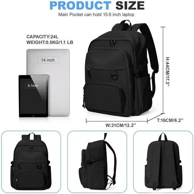 ^^ COMFORT & CONVENIENCEThis backpack is ergonomically designed. The adjustable padded shoulder straps are very comfortable and will not put too much burden on your shoulders even when you carry it for a long time. ^^ Applicable OccasionsThis backpack can carry everything you need in your daily life. Such as going to school, going out, working out, camping, biking, traveling, shopping and so on. This casual backpack is your best choice. ^^ College Student Backpack SizeThe backpack measures 13.38 x 18.5 x 6.69" (W*H*D), Weight: 1.49LB. The backpack is available in six colors.
