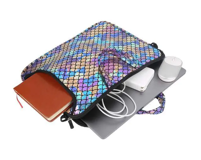 • 14-Inch laptop bag made of top neoprene material, soft, waterproof and durable. Printed mermaid scale make you unique.