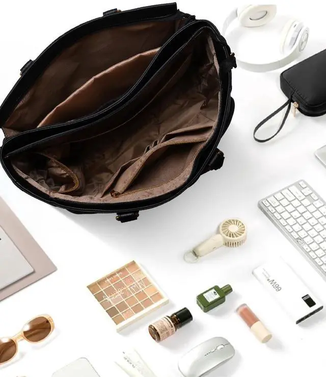 Effortless Elegance, Organized Ease You're rushing to a meeting, and in one smooth motion, you slip your laptop from the dedicated back compartment. No fumbling, no frantic searching. This commuter tote for women keeps your 15.6 -inch laptop cradled in safety and at the ready, turning chaotic moments into composed elegance. ^^ Your Daily Essentials, Right at Your Fingertips Imagine never diving into the abyss of your bag for keys or glasses again. With two spacious front pockets, your phone, lipstick, and sunglasses have a home of their own.