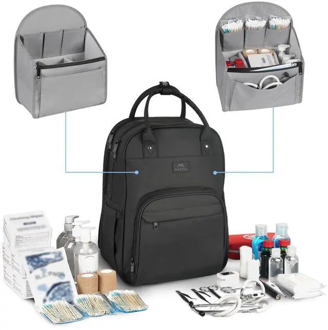 Multifunctional Backpack: The main compartment of this nursing bacpack is design to fit a Removable Medical Supplies Organizer. With the Organizer, you can organize various large medical stuff. If you take the organizer out, it also serve you well as a work backpack, travel backpack, laptop backpack and so on. Suitable for storaging college supplies, travel accessories, stationery, clothes, magazine, etc., to provide you with a variety of possibilities ^^
