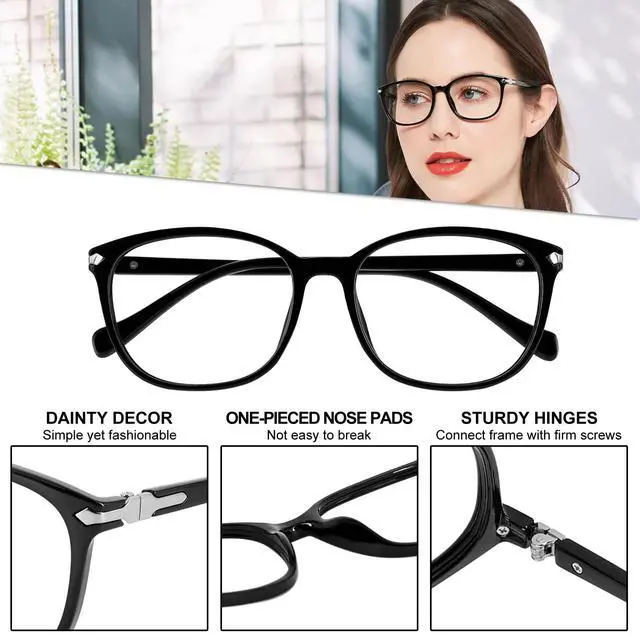 4 packs black reading glasses for women - WEMOOTANTS women's readers 1.00 features high definition lens in large designer frames, helping seeing close up super clearly. The valuable set of 4 pairs is convenient for keeping cheaters in different places so you always have a pair handy. ^^ Protect your eyes from blue rays - Our blue light reading glasses 1.0 lens have advanced blue light blocking coating (No color tinted) to effectually filter out harmful blue lights and reduce discomfort and eyestrain when you browsing phone, tablet or pad for long time. ^^ Classic style with modern appeal - Large square readers lens in full rimmed black frame.