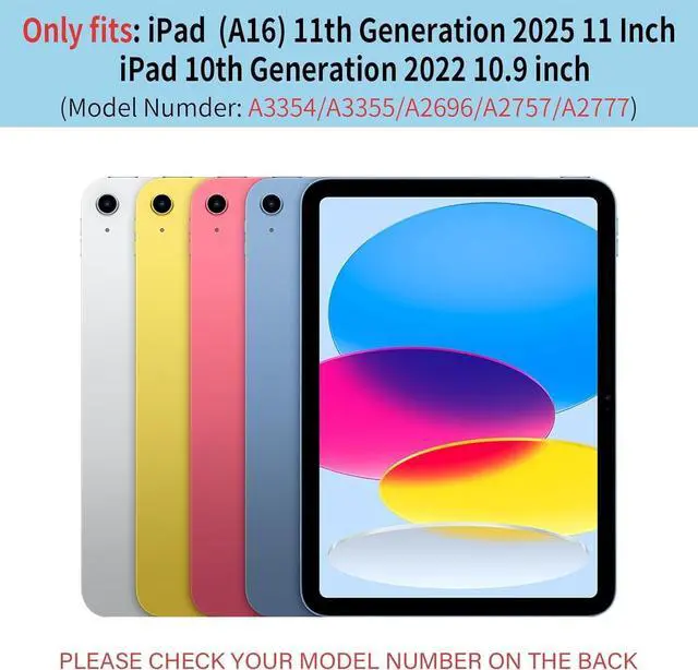 [Compatibility]: Protective case for iPad (A16) 11th generation 11 inch 2025 (Model: A3354 A3355 A3356), iPad 10th generation 10.9 inch 2022 (Model: A2696 A2757 A2777 A3162). Please check back bottom of your iPad cover to find the model number. ^^ [All-around