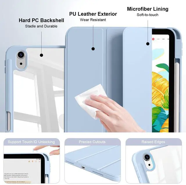 Protection & Precise Cutouts]: Durable PU leather exterior and soft microfiber lining to prevent your 10th generation from being scratched. Hard PC clear back case with a flexible TPU frame protects your tablet from dripping and shocks. Precision cutouts allow access to all ports and buttons, raised edges on the camera and screen to prevent accidental scratches.