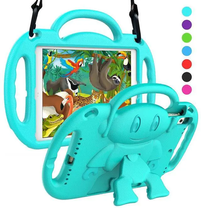 SUPLIK Kids Case for iPad 5th/6th Generation (9.7 inch, 2017/2018), iPad Air 1 & Air 2 & Pro 9.7 Case with Shoulder Strap Handle Stand for Apple iPad 5/6 & iPad Air 1st/2nd Gen, Cyan