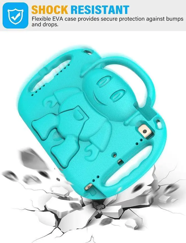 • Made from durable,lightweight,kid-safe and shock-resistant eva material that it fully covers the back, sides and extend the surface of the iPad screen, safely protects your ipad against bumps and drops.