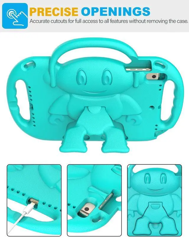 Pro 9.7 (Model number: A1474 A1475 A1476 A1566 A1567 A1673 A1674 A1675 A1822 A1823 A1893 A1954), check the back of your iPad to find out the model number. ^^ Made from durable, lightweight, kid-safe and shock-resistant eva material that it fully covers the back, sides and extend the surface of the iPad screen, safely protects your ipad against bumps and drops. ^^ Built-in adjustable detachable shoulder strap allows your children to easy carry this iPad case anywehere or hang the case on a car seat for watching video on the road. ^^ Cartoon boy designed at the back can be filpped out as a foldable kickstand to support your ipad on the desk for a comfortable hands-free viewing. ^^ Precise cut-outs for charging port, speakers, cameras, earphone, volume and power buttons, allows you easy access to all features without removing the case.