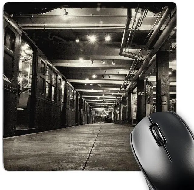 Subway station, Sepia mouse pad is 8" x 8" x 25" and is made of heavy-duty recycled rubber. Matte finish image will not fade or peel. Machine washable using a mild detergent and Air dry.
