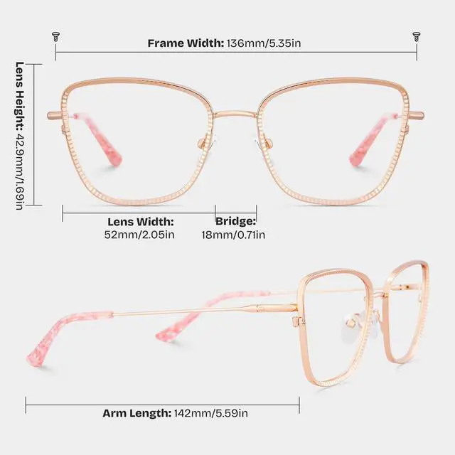 These metal frames combine modern minimalism and geometric precision in the design. ^^ Crafted with electroplating, the square silhouette features rose gold-tone finishes with sleek, clean lines throughout. Finished in romantic rose gold, the frame serves as a versatile piece for both professional settings and casual occasions. ^^ Our blue light blocking glasses comes with UV401 protective lenses, it can protect our eyes from blue light and harmful rays, relieve your vision fatigue and headache at work and in life to get a better sleep.
