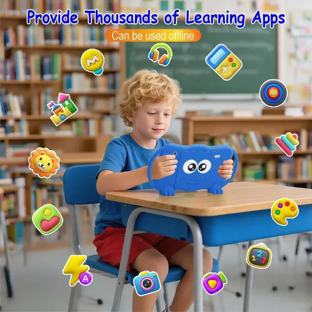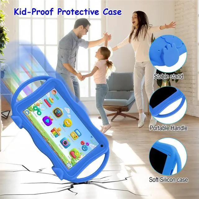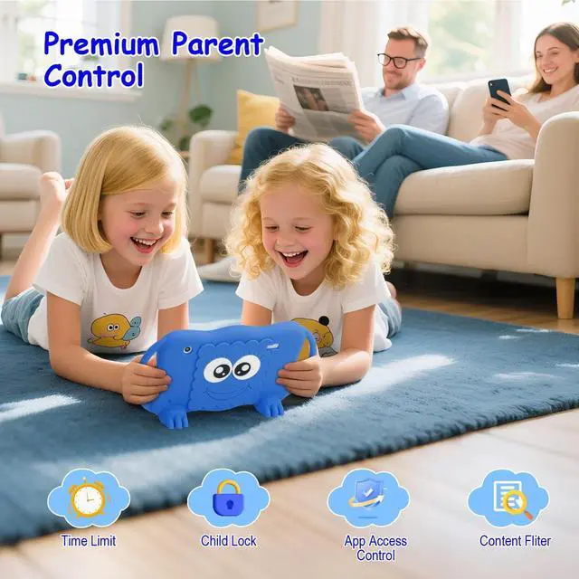 New Full-Featured Kids TabletEquipped with a high-speed Android quad-core processor, this baby tablet ensures smooth app performance and fast page loading. With 2GB RAM and 32GB ROM (expandable up to 1TB via Micro SD), your child can store more photos, videos and educational content. The tablet for kids 3-12 features a long-lasting 8-hour battery to keep young minds entertained during road trips, flights or at home ^^ Smart Parental ControlsThe toddler tablet puts you in complete control of your child's digital experience. With its easy-to-use parental controls, you can effortlessly set daily time limits, block inappropriate apps and websitesall through a simple parental dashboard.