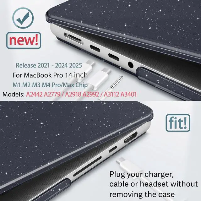 ^^ Case dimension: 12.4 x 8.8 x 0.62 inch, compatible with MacBook Pro 14 inch M5 M4 M3 M2 M1 case with dimension: 12.31 x 8.71 x 0.61 inch (2021 2022 2023 2024 2025 Released). Ultra slim light weight hard case, Easy to use without adding weight. ^^ Full Access to