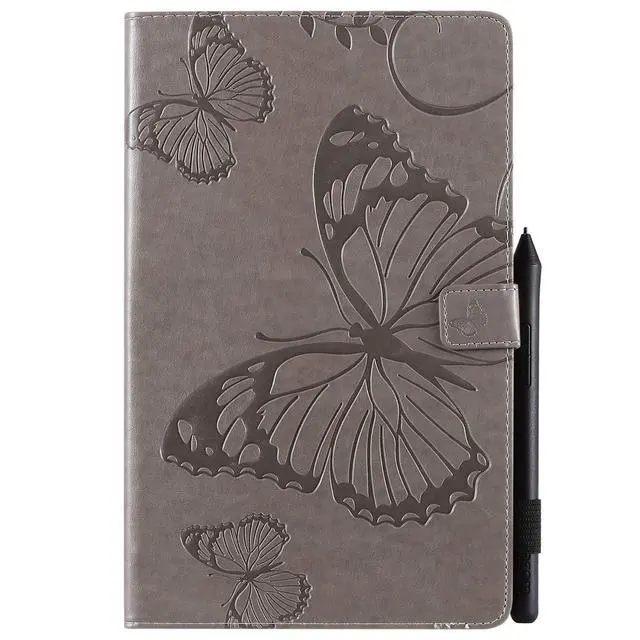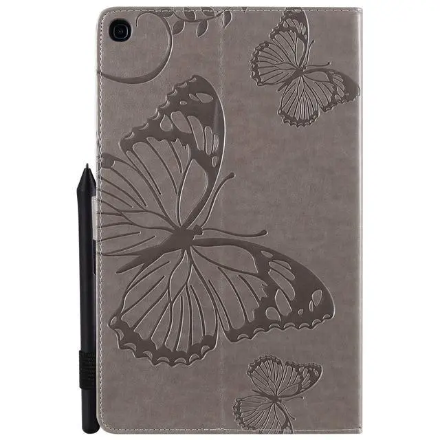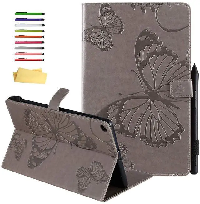 UUcovers for Samsung Galaxy Tab A 10.1 inch Tablet Case 2019 Model (SM-T510/T515/T517) with Stand/Pencil Holder/Card Slots/Magnetic Embossed PU Leather Folio Wallet Soft TPU Back Cover, Gray Butterfly