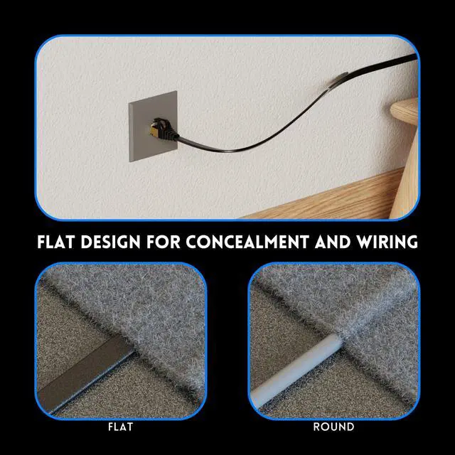 Hide: Cat7 Flat ethernet cable design offers an elegant look and allows for easy installation under carpets or along walls, providing flexibility and maintaining a clean, organized space ^^