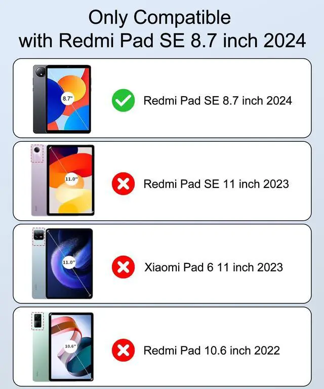Compatibility:Designed for Xiaomi Redmi Pad SE 8.7-Inch 2024 Tablet.It will NOT work for any other model device.Please check your tablet model before purchasing.(This product does not include: tablet, pen!)