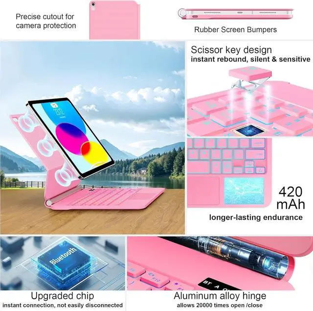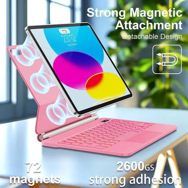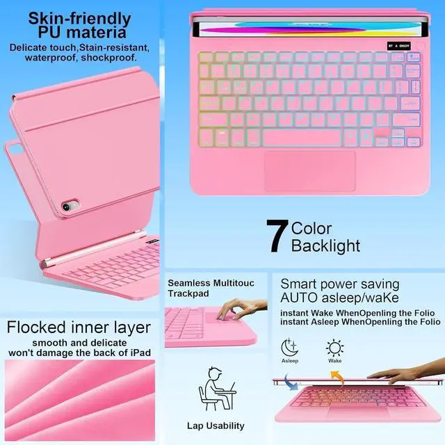 Number: A3355/A3356) ^^ 7-Color Backlit Keyboard Case for iPad 11th/10th GenFrom dawn to dusk, adapt effortlessly! Adjusting 7 backlight and 3 levels of brightness ensures clear visuals in every setting, enhancing your immersive experience. ^^ Floating Cantilever Stand & Multi-View Flexibility: The magic-style floating cantilever stand and strong magnetic attraction hold iPad firmly and stably in place like a laptop, the floating cantilever design allows you to easily adjust to your favorite viewing angle for typing or browsing. ^^ Multi-Touch Clickable Trackpad Keyboard for iPad 10.9" iPad 11"inch: The Multi-Touch trackpad supports full-area press, swipe gestures, and media control. Its sensitivity can be adjusted via iPad settings, providing smooth, seamless operation ^^ Lightweight and Portable DesignBoasting a slim, lightweight profile, the GGQFGTOJ Edge is the ideal companion for on-the-go users who seek functionality without additional bulk.