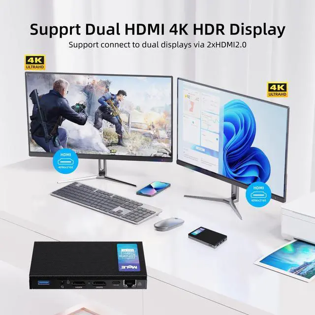 Built-in 8GB LPDDR4 RAM, 256GB SSD storage, with a Micro SD card slot can be added separately to expand the storage up to 1TB, internal M. 2 2280 PCIe SSD expandable up to 4TB (not compatible with SATA interface). ^^ WiFi 5, Bluetooth 5.1, Gigabit Ethernet and Dual HDMI - The small frame computer adopts WiFi 5 technology, built in a Ethernet LAN port, providing a stable connection at higher speed, ensure smoother streaming and faster downloads. The HDMI supports 4K@60hz HDR videos dual monitors, ideal for visually home video, with 4xUSB-A 10Gbps ports and Bluetooth 5.1, easily connecting to other devices, allow you to deal with multiple tasks and projects easily at the same time.