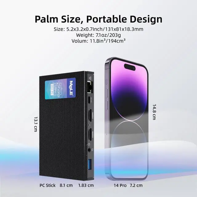 ^^ Small Form Factor and Fanless - With a fanless design, this small footprint pc is no noise, no dust, no shake, reaching a totally silent performance, perfect for office, zoom, home TV, industries, supports 24/7 operate at a low power consumption. The super thin computer only 5.2 * 3.2 * 0.7 inch and 0.44 lb, can slip it into your pocket and get on the go, with the wall mount provided perfectly fixed on the back of the monitors. ^^ Elegant Fanless Cooling Design - This fanless PC features passive cooling system that prevents overheat.