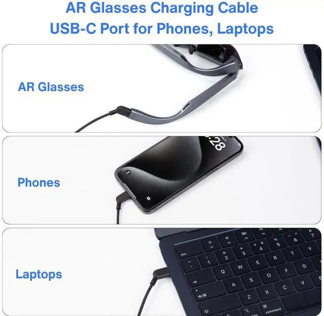 USBC Universal Compatibility: Works seamlessly with AR glasses, phones, tablets, and laptops for charging, data, and display needs.