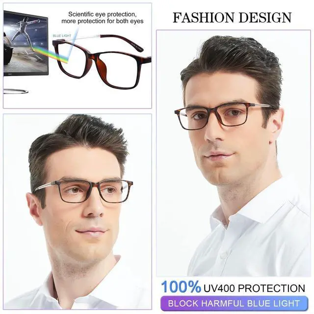 Blue light reading glasses for men 3.5 - against the high energy blue light from digital screens (computer, phone, pad, TV, LED, etc. ). with classic retro rectangle gives you a fashion look while being more professional. Designer readers with exquisite gifts, also has + 1.00 to + 4.00 accurate magnification to meet your daily needs. ^^ A-class blue light blocking reading glasses 350 for men - with yellowish tinted lenses can improve contrast, reduce chromatic aberrations, restore true colors. Relieving your eye fatigue for long-term screen reading, computer working, watching video, gaming, or using mobile phone; enjoy your digital time and get a better sleep at night! ^^ High definition vision - top rated blue light blocking readers with UV400 protection can effectively block glares; blue light blocker lens give you clear vision; Sturdy & lightweight; has higher precision as well, perfect for close reading, working or enjoying screen time at office, home, party, or in bed.