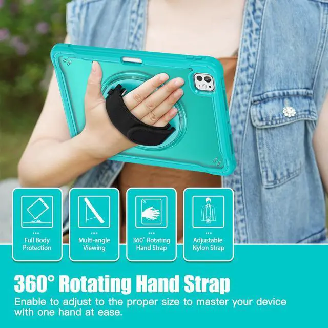 ^^ & &: Provide the protection and convenience when you play or work with iPad. Hang it anywhere for your entertainment, makes you using easily. 360 Degrees rotating Kickstand provides convenient viewing, with soft strap, easy to use your 10th gen iPad in your outdoor travelling, working, gaming with kids.