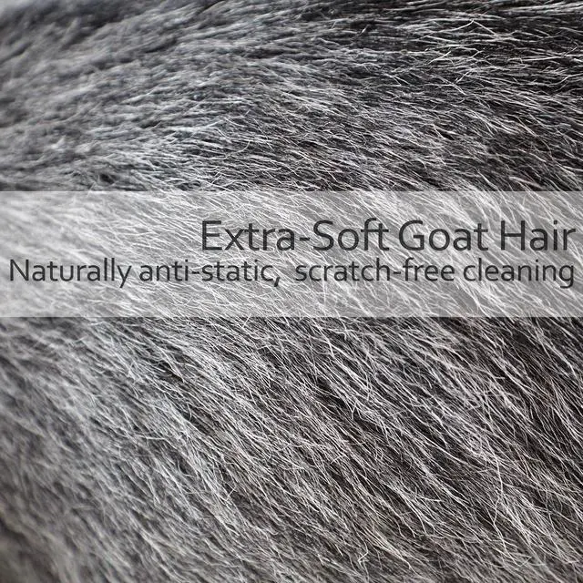 example: from the display. The other part, with strong horsehair, gets the dirt out even between the buttons. Both parts are rotatably connected to each other. So the brush also fits in the small laptop bag.