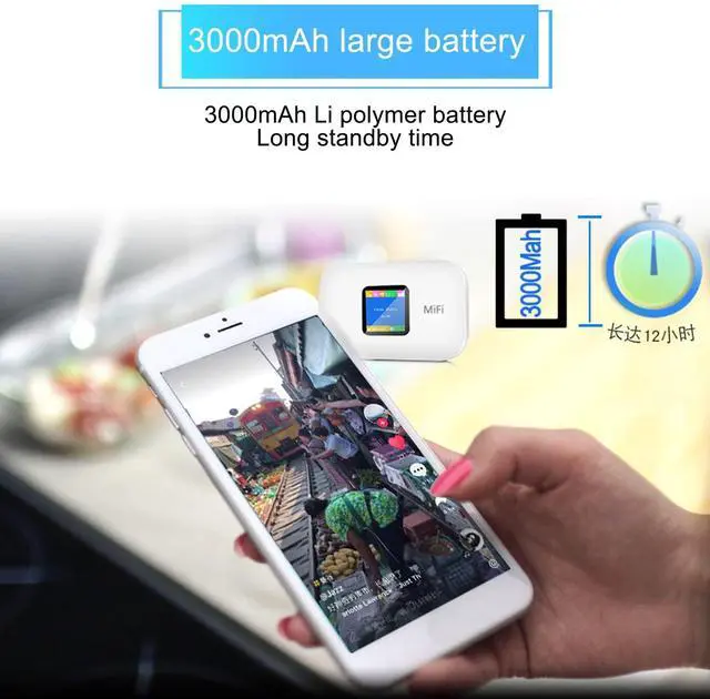 ^^ 3000mAh Battery: Mobile hotspot uses 3000 mAh lithium polymer battery, long standby time, ABS material,, can be used for a long time.