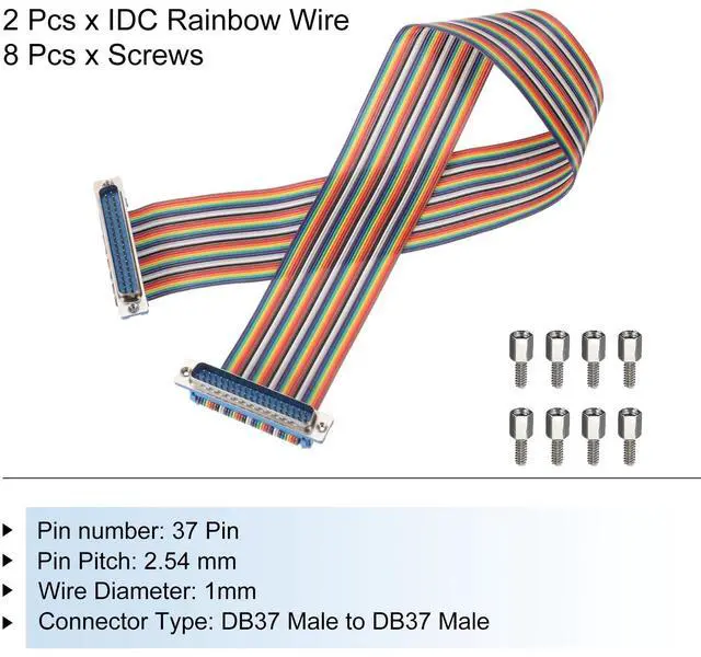 Connector Type: DB37 Male to DB37 Male; Are there any advantages of the product? Ribbon cable saves space and time on circuit interconnecting assemblies. It is a popular choice for construction or repair. Can be applied to digital cameras, digital camcorders, laptops, LCD TVs, LCD monitors, etc. How to use it? Connect the appropriate end of the wire to the corresponding connectors or pins on your devices. What should I notice? 1. Ensure that the pin pitch of 2.54 mm matches the connectors or pins you are connecting to.