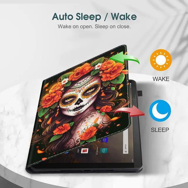 Wake Function: The Fire HD 10 2021 covers are integrated with a magnetic closure to ensure your cover stays shut while on the go, and automatically puts your Fire tablet to sleep when it is closed and wakes it upon opening. Saving power for longer reading time.
