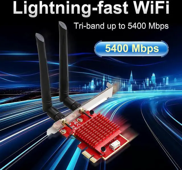 Easy Setup: Designed for desktop PCs running Windows 10/11, this PCIe card is easy to install and comes with a Bluetooth USB cable. Enjoy instant wireless connectivity and superior signal strength with tri-band high-gain antennas ^^ Advanced