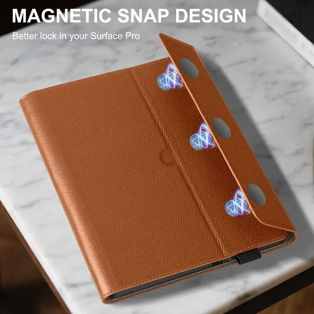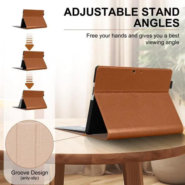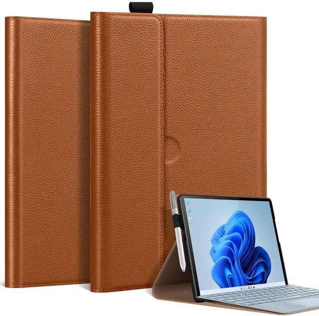 Thryxop Genuine Leather iPad Case, Premium protection meets elegance for your Microsoft Surface Pro 11/10/9 - (13inch). Crafted with genuine leather, this case features a adjustable stand (perfect for work, streaming, or calls). Precision-cut ports, anti-slip grooves, and reinforced edges ensure full functionality with lasting durability.