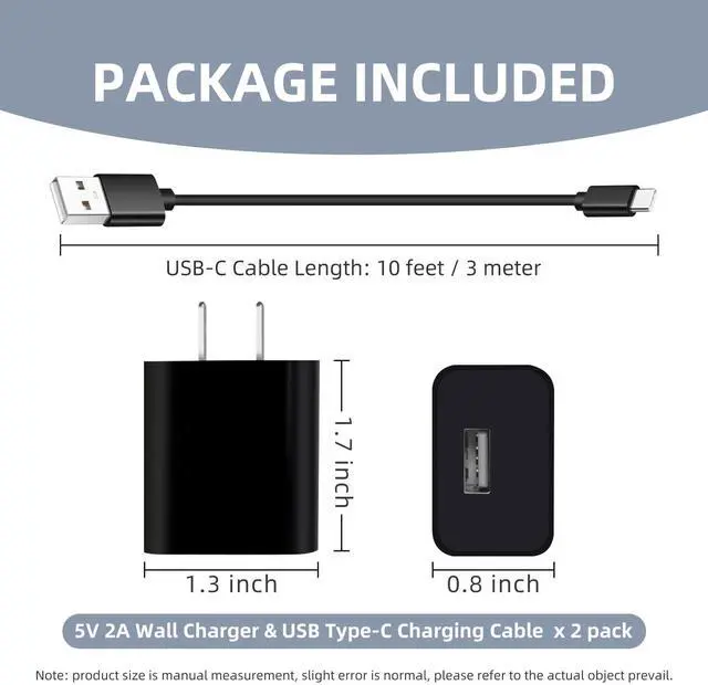 Package Included: 2 x 5V 2A USB A Wall Charger2 x USB Type C