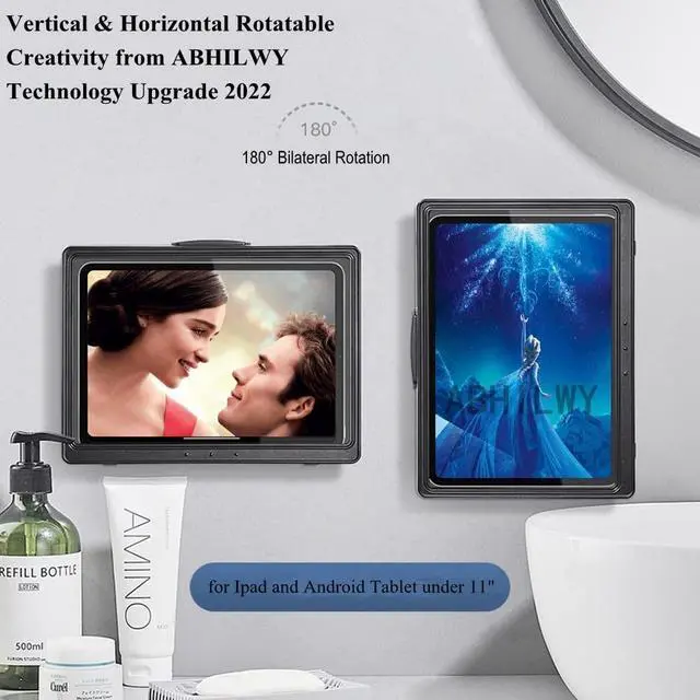 ^^ Enjoy Life: The shower tablet holder has 0.25 mm flexible touch screen, free to touch when cooking in kitchen or showering in bathroom, adjustable volume, change songs, play games, scroll news. ^^ This shower tablet holder with 180 degrees rotating design has anti-fog high perspective window, no need to bend down to watch the video. Feel free to adjust this waterproof tablet holder to the best viewing, horizontal, vertical, or any other angle. It is also suitable as holiday, birthday, anniversary, Christmas, new-year, Valentine's Day gift to your friends or relatives, especially suitable as gifts for children.