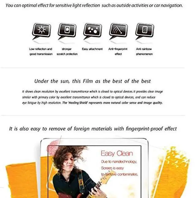 Excellent for Outdoor ReadabilityReduces Reflections, Eliminates GlareScratch Resistant Coating, Anti Dust, Anti Fingerprint, No Rainbow PhenomenonEasy Installation And No Residue When RemovedHigh Definition Transparency Film That Ensures Maximum ResolutionReal Touch Sensitivity For a Natural Feel That Provides Flawless