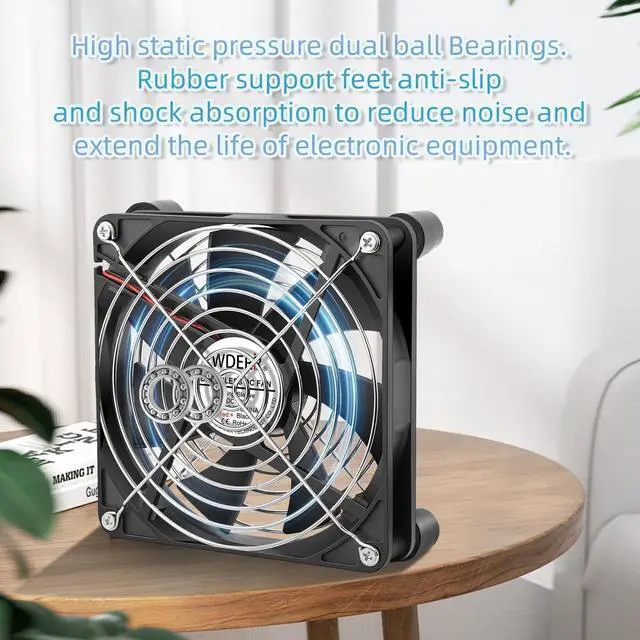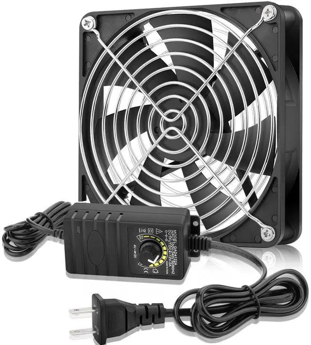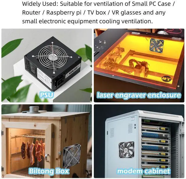 Noise: 45dBA ^^ Widely ApplicationDIY ventilation for biltong box, window, router, receiver, av cabinet, chassis, server, pc case, greenhouse, reptile aquarium, mushroom growing or as exhaust fan for freeze dryer, crawl space, basement, garage, attic, rv refrigerator, x-box, psu, amplifier, kitchen, humidifier, sound system, etc ^^ Variable CoolingThe fan's variable speed settings, detachable grill, and feet add to its convenience, allowing easy integration into various projects.