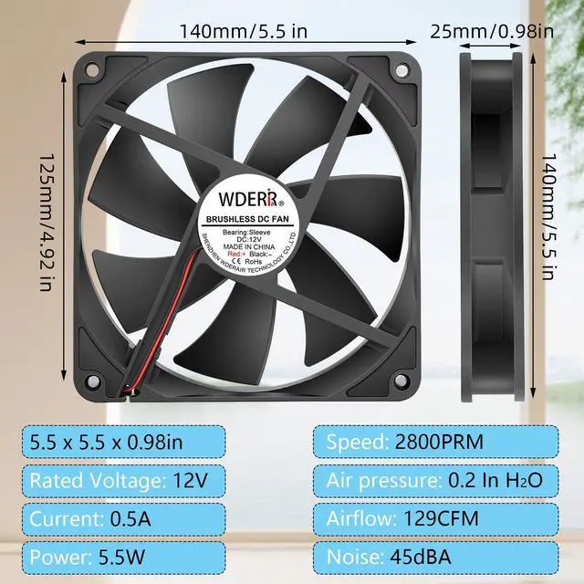 140mm Fan140 x 140 x 25 mm ( 5.5 x 5.5 x 0.98 in) ^^