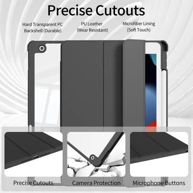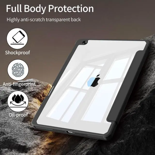KENKE Smart Case for iPad 9th Generation 2021/iPad 8th Generation 2020/iPad 7th Gen 2019 10.2 inch with Pencil Holder, Slim Clear Hard PC BackTPU Shockproof Frame Cover for iPad 9/8/7, Black