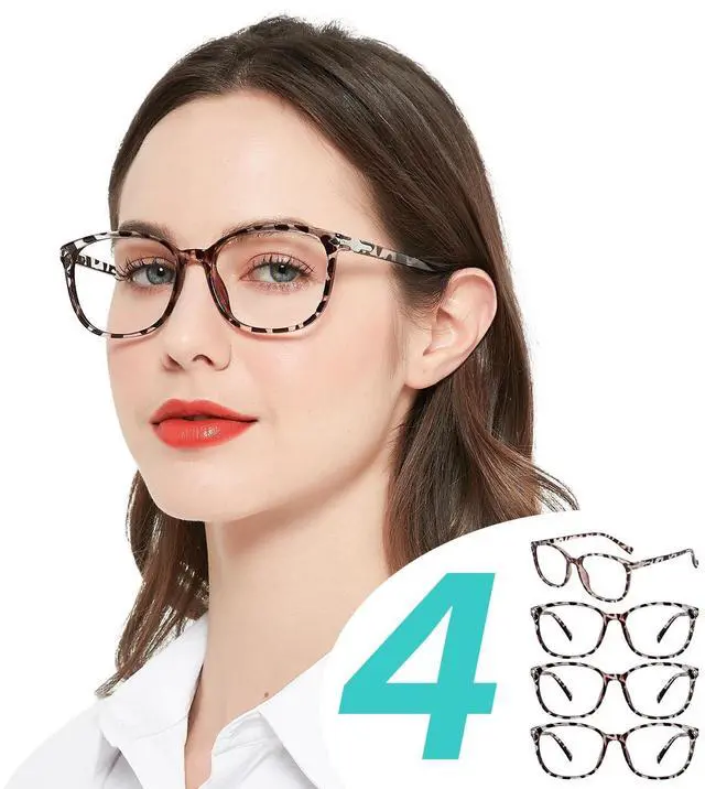 4 packs reading glasses 1.5 for women - WEMOOTANTS women's readers 1.50 features high definition lens in large designer frames, helping seeing close up super clearly. The valuable set of 4 pairs is convenient for keeping cheaters in different places so you always have a pair handy. ^^ Protect your eyes from blue rays - Our blue light reading glasses lens have advanced blue light blocking coating (No color tinted) to effectually filter out harmful blue lights and reduce discomfort and eyestrain when you browsing phone, tablet or pad for long time. ^^ Classic style with modern appeal - Large square readers lens in full rimmed trendy leopard frame.