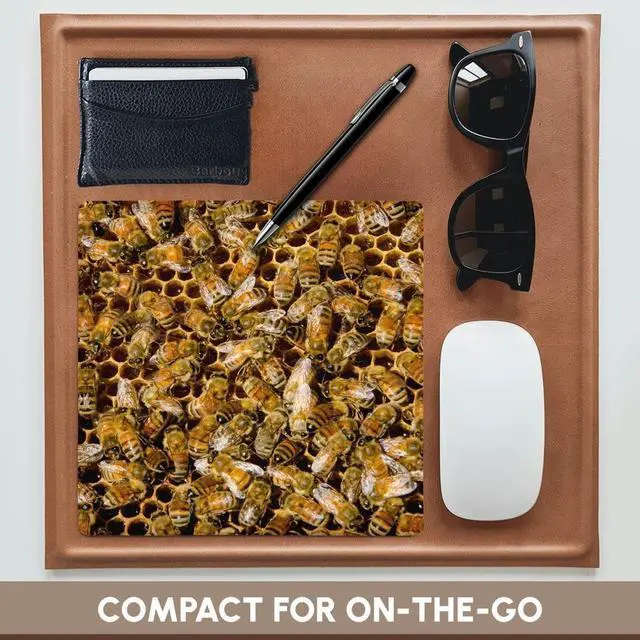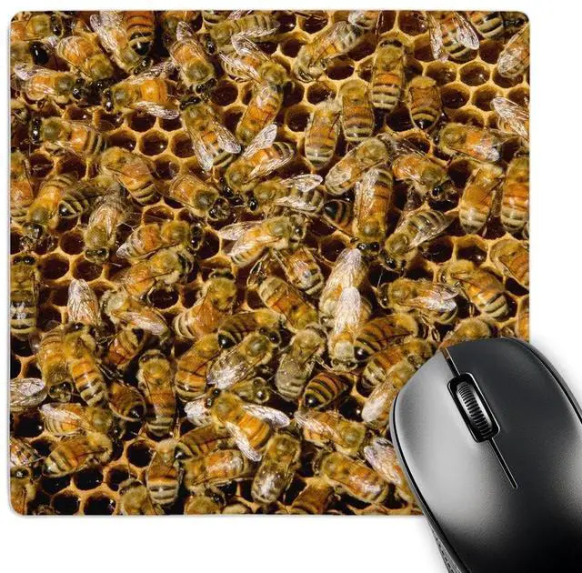 Bee keeping at Arles Honey Farm, kelowna, British Columbia, Canada. Mouse pad is 8" x 8" x 25" and is made of heavy-duty recycled rubber. Matte finish image will not fade or peel. Machine washable using a mild detergent and air dry.
