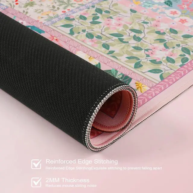 Non-slip Rubber Base: The large desk pad mat is made of premium rubber base, and the dense non-slip rubber base can firmly grip the desktop, thus providing stable operation for the mouse and keyboard. The soft floral desk mat is flexible enough and can be rolled up for easy transportation and storage.