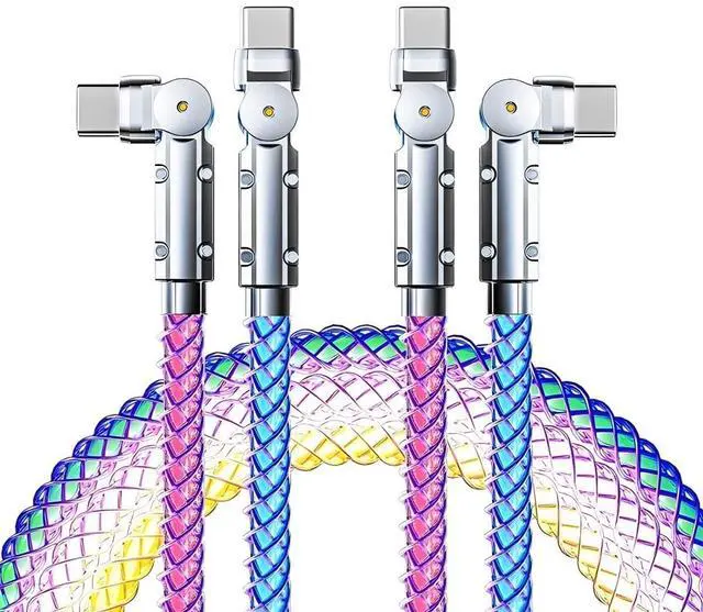 Novative 180 degree head rotation Design: The LED USB C cable plug with its user-friendly180 degree head rotatio design no more breaking cords from constant bending,to enhance your daily plug-in moments.prioritizes your comfort, curating an effortless connective experience