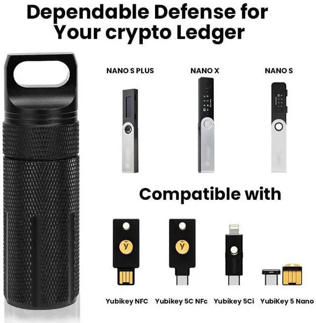 GREAT QUALITY FOR LAST - This YubiKey 5/5C NFC And Ledger Nano X S case features good performance in hardness & durability to make its unbreakable in any bad outdoor occasions, With the 6061 aviation aluminum alloy material and ultra-precision CNC cutting process ^^ GREAT QUALITY FOR LAST - With the 6061 aviation aluminum alloy material and ultra-precision CNC cutting process, this YubiKey 5/5C NFC And Ledger Nano X S case features good performance in hardness & durability to make its unbreakable in any bad outdoor occasions. ^^ ODORLESS & SMELL PROOF - Upgrade silicone O-ring in the upper and lower screw caps, YubiKey 5/5C NFC And Ledger Nano X S case with an excellent airtight feature to prevent odor, water, dust and moisture from entering the containerit screw on and off very well and won't open accidentally ^^ MULTIPURPOSE STASH JAR - Compact size and lightweight, BIU-BOOM YubiKey 5/5C USB And Ledger Nano X S case container comes with carabiner to allow you attach it to your backpack easily, or you can put this portable YubiKey 5/5C NFC And Ledger Nano X S case container into the pocket to carry it with you anywhere.