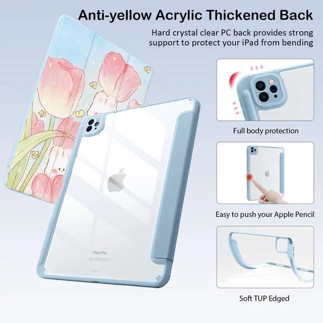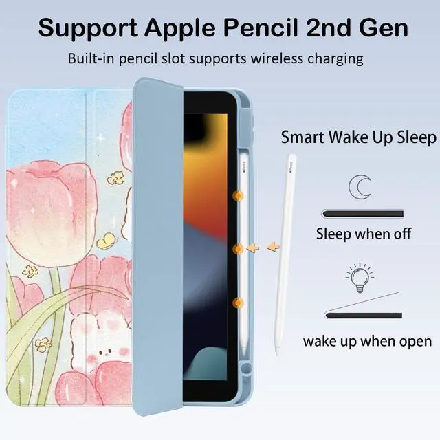 Please Note: It doesn't compatible with any other tablet models ^^ Well made with PU exterior, microfiber lining and soft silicone frame and clear acrylic back cover, offers full body protection from drops and scratches ^^ Built-in Apple Pencil holder, supports wireless charging, grab your Apple Pencil effortlessly whenever you want ^^ Cover has flip capability to transform the case into a viewing stand and typing stand. Available in a variety of bright colors and unique pattern ^^ Built-in magnetic strip provides auto sleep / wake function. Precise cutout and design allow easy access to all ports, sensors, speakers, cameras