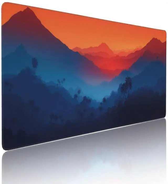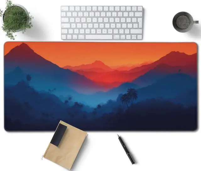 Twilight Mountain Palm Trees Large Mouse Pad, Vintage Aesthetic Gaming Desk Mat, XXL Keyboard Desk Pad Mat for Desktop, 35.4"x15.7" Non-Slip Base Big Mousepad with Stitched Edges