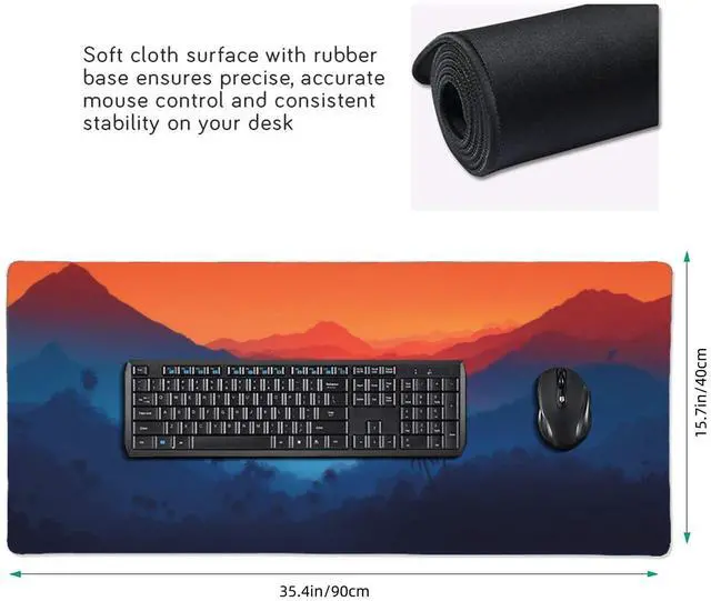 Extended Desk Mat Size: Keyboard pad's 35.4 x 15.7 inches and is 3mm thick. The desk pad is large enough to have a mouse, gaming keyboard, and other desk items. The 3mm thick not only reduces noise,but also ensures a more comfortable experience for your hands, it very suitable for offices and games, while maintaining protecting your desk all the time