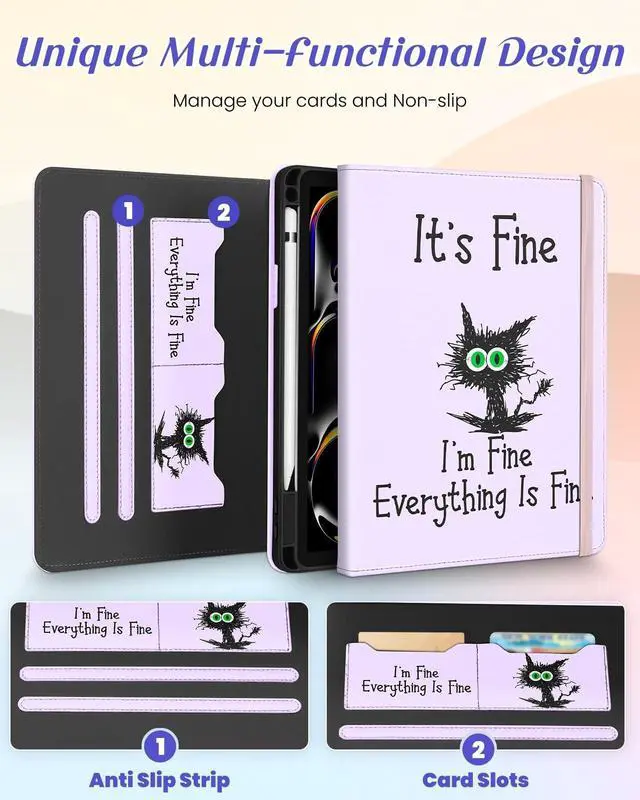 Multi-Functional Design: This for iPad Pro 11 case M4 2024 5th Generation features an elasticized cord strap, which ensures that your tablet closes securely, provides slip or drop protection. It also has two card slots designed to hold your bank cards business cards and other cards