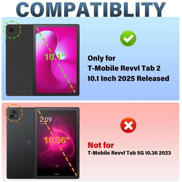Compatible ModelsDesigned ONLY for T-Mobile REVVL Tab 2 10.1 Inch 2025.Not compatible with other tablet models.; Allows easy access to all buttons, controls and ports without removing the case.